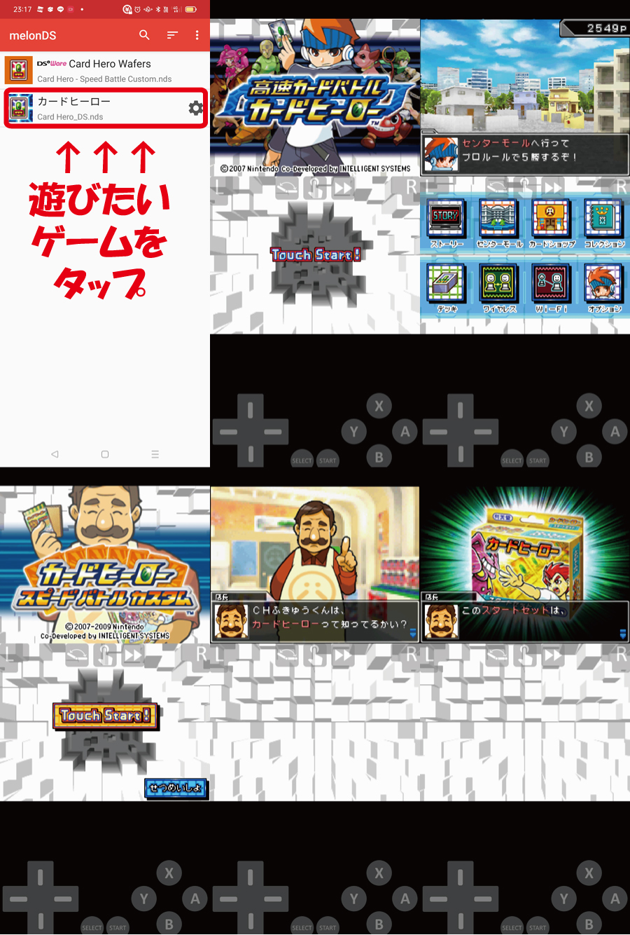 melonDS起動後にリスト表示される「.ndsファイル」の中から遊びたいゲームをタップすればOKです。