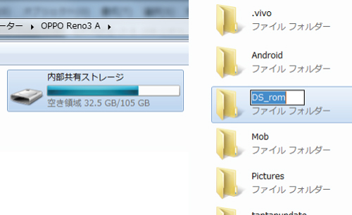 パソコンからスマホ内部を開き、適当な名前で新規フォルダを作ります。