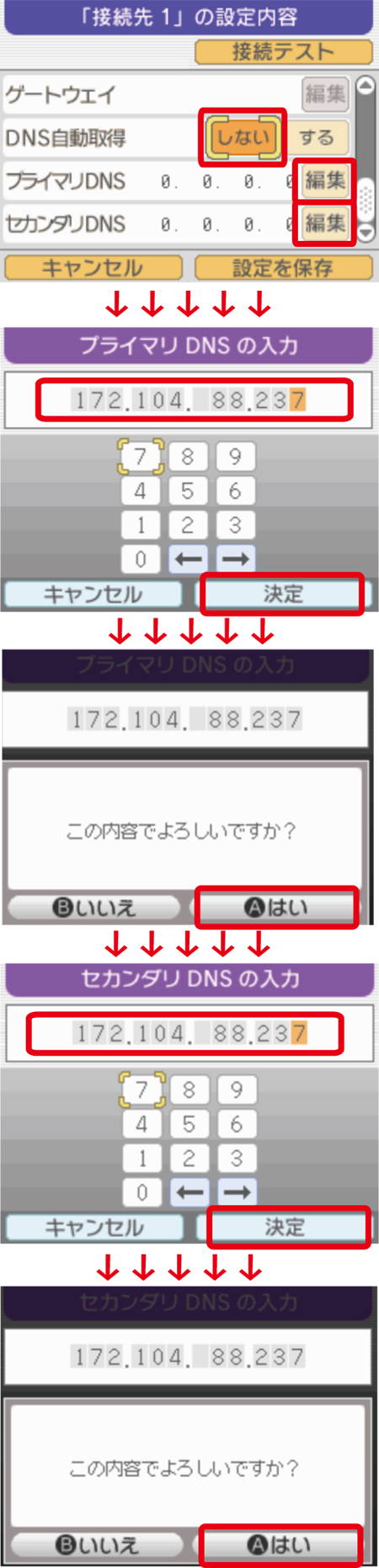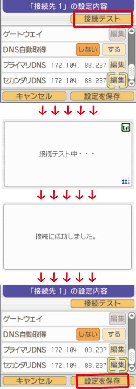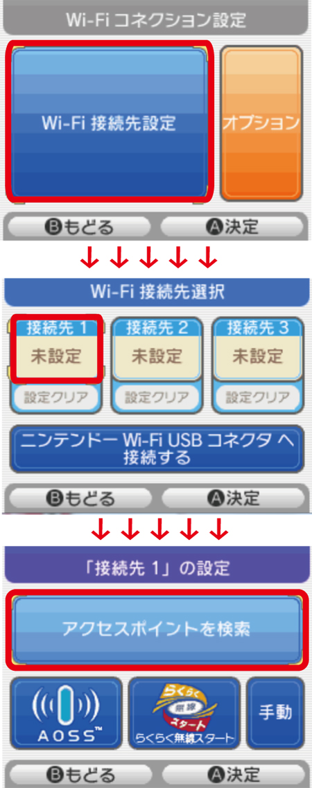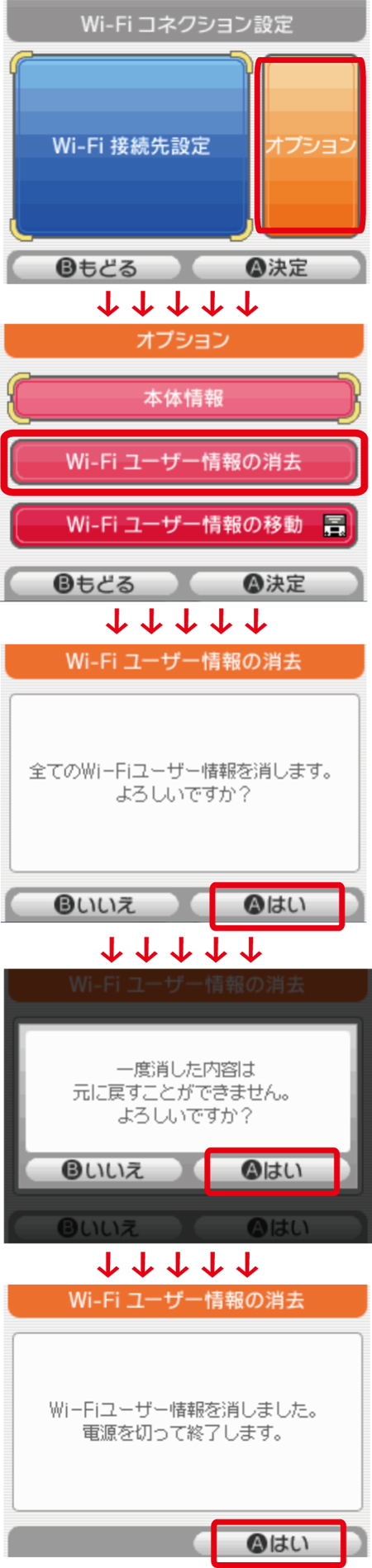 ※どうしてもうまくいかない場合はゲームのセーブデータをバックアップして新しいものを作り、「セーブデータ側のWifi未設定状態」にしたうえで再度試してください。