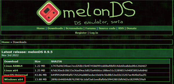 melonDS Windows x64 より最新版をダウンロードしてください。
