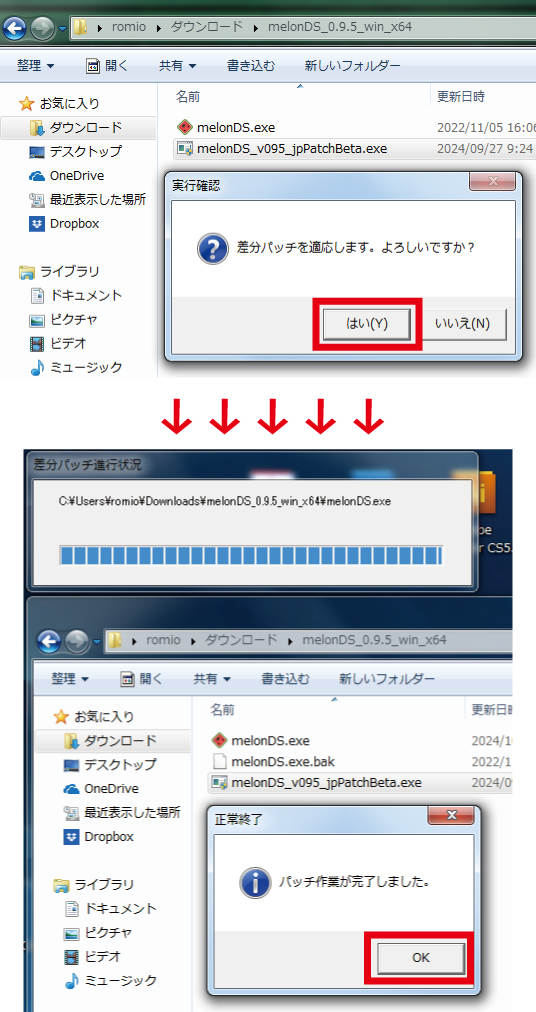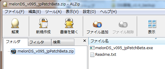 melonDS_v095_jpPatchBeta.exeとmelonDS.exe.bakは用済みなので消去しておいてください。